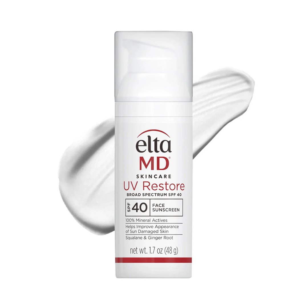 EltaMD UV Restore Amplio Espectro FPS 40 es un protector solar 100% físico que mejora la piel dañada por el sol. Su fórmula avanzada contiene escualano, que restaura la hidratación y elasticidad natural de la piel. UV Restore está formulado con extracto de raíz de jengibre e isomerato de sacárido, que promueven una tez saludable al mejorar la suavidad de la piel, minimizar las manchas oscuras y reducir la apariencia de líneas de expresión y arrugas. Contiene antioxidantes que combaten los radicales libres que causan el envejecimiento cutáneo, asociados con la radiación ultravioleta (UV) e infrarroja (IR), y ofrece protección contra la luz visible de alta energía (HEV).